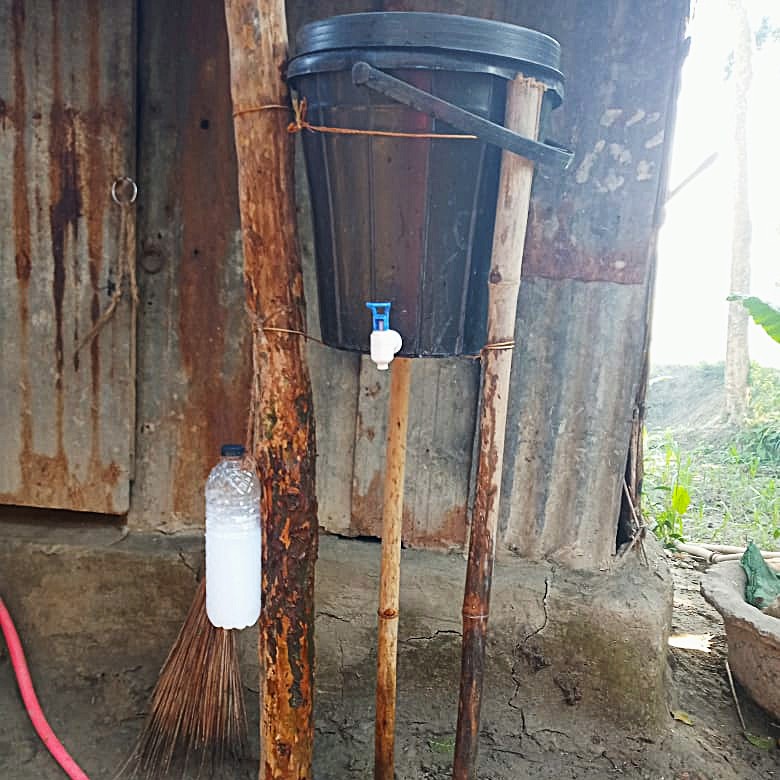 CHoBI7 Scale Up household member using a self-made handwashing station.