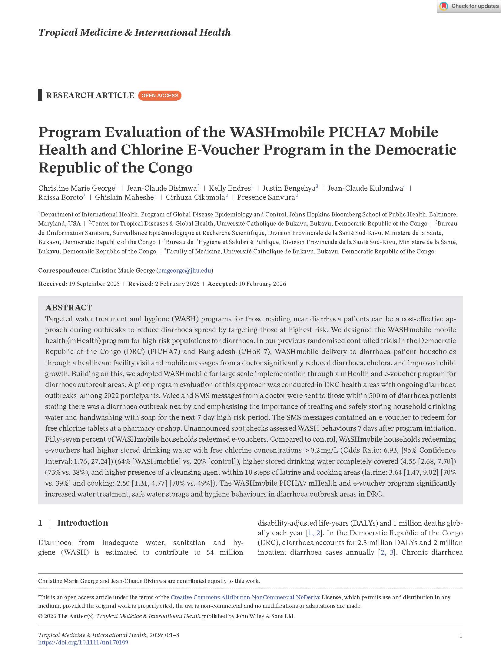 Study from REDUCE Baby WASH program in rural DRC to develop and evaluate scalable interventions that reduce fecal contamination and exposure.