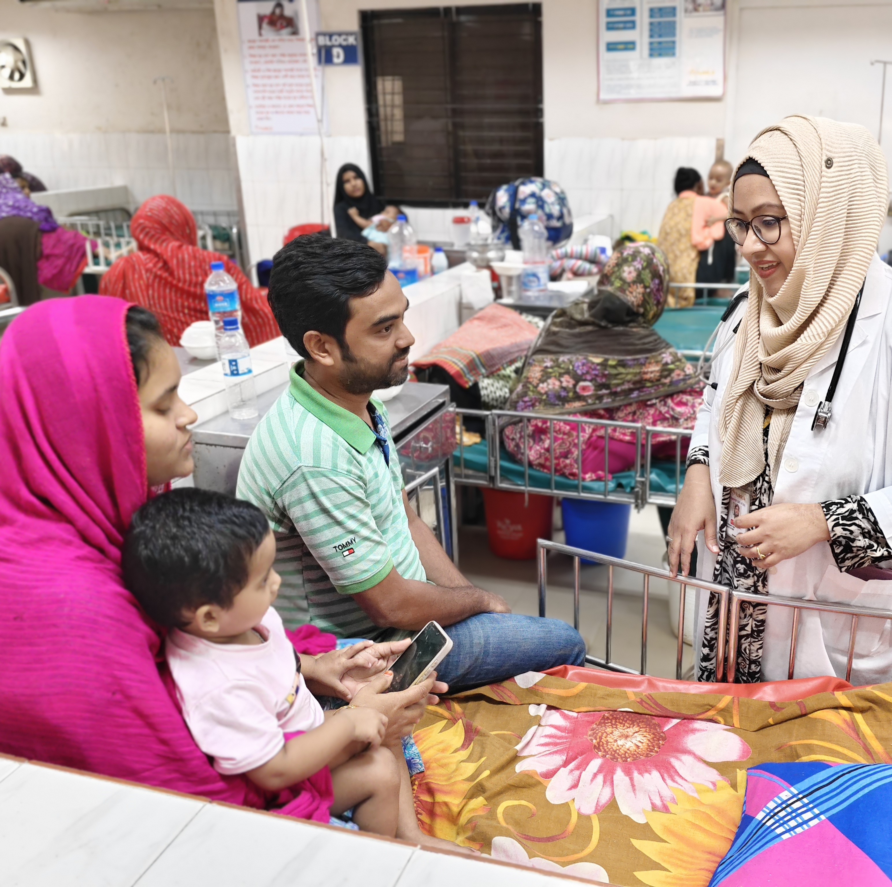 Dr. Picha in the healthcare facility with a diarrhea patient family.