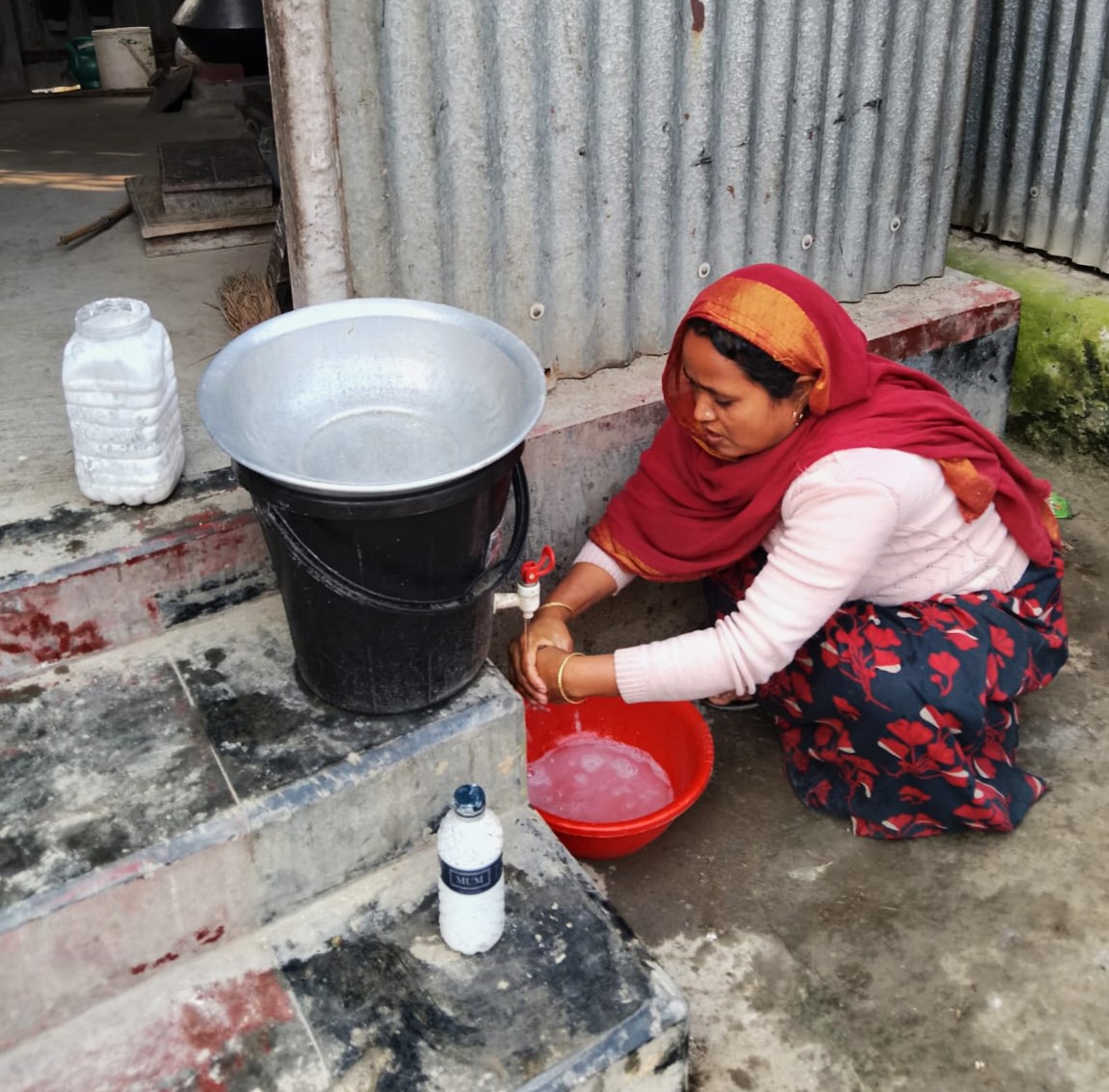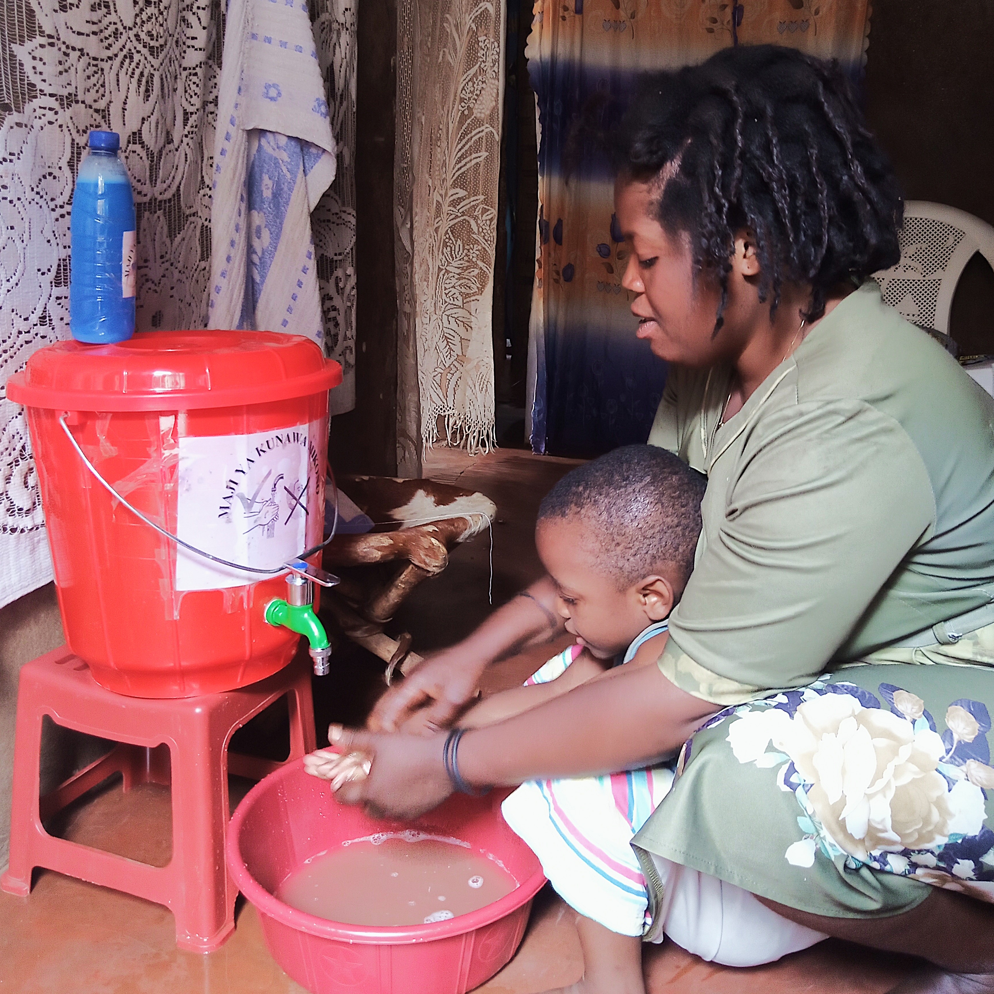 CHoBI7 Scale Up household member using a self-made handwashing station.