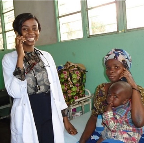 Dr. Chobi at the healthcare facility demonstrating mobile messages.